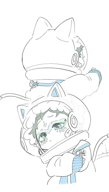 グノーシアとまねきねこコラボ楽しみすぎて…前描いたやつ載せときます。 棒立ちラキオさん。しっかりとお迎えします… -