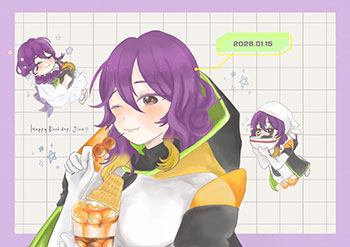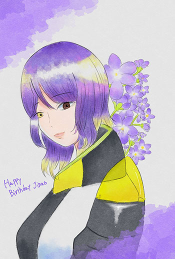 ジナぴお誕生日おめでとう〜!!!! 誕生花であるすみれと髪色が まんま同じなのとても可愛いと思います ことり先生の水彩タッチで星空のような ジナぴのデザインが本当に大好きです ジナぴを産んでくれてありがとうございます -