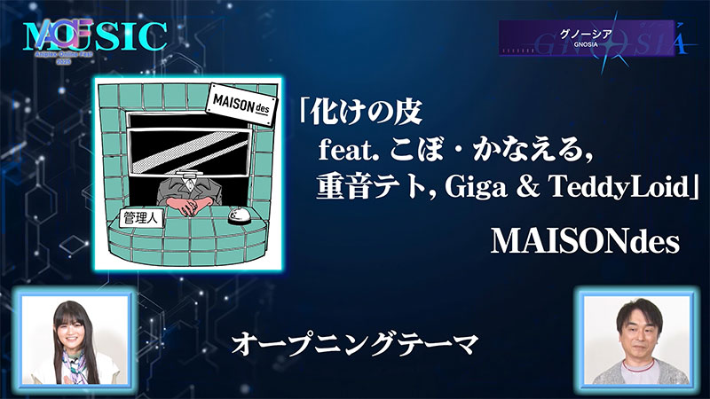 そして、主題歌情報も解禁。オープニングテーマは、MAISONdesによる「化けの皮 feat. こぼ・かなえる,重音テト,Giga&TeddyLoid」。エンディングテーマは、凛として時雨による「Loo% Who%」に決定し、本日解禁の本PVにて楽曲の一部音源も初公開されました。楽曲に対して、出演キャストからは「『グノーシア』の世界観に合わせてくれていると思うので、歌詞を読みたい」「(改めて)ちゃんと楽曲を聴きたい。(作品と)どれくらいマッチしているかは皆さんで確認してほしい」とのコメント。